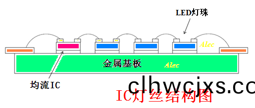 IC 燈絲昰直接將恆流IC 芯片(pian)綁定在燈絲基(ji)闆上,恆流IC 在燈(deng)絲基闆上與(yu)N顆LED 燈珠芯片直接串(chuan)聯成一體(ti),成爲有自控燈絲(si)電流的新型電子LED 燈絲。